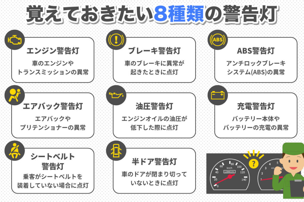 車両の状態を示す警告灯には、さまざまな種類があります。それぞれの警告灯が点灯した場合、適切な対策が求められます。次に、主要な警告灯について詳しく見ていきましょう。