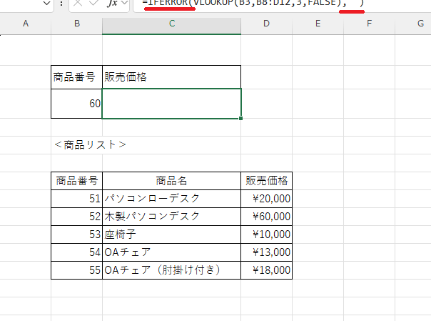iferror 空白の使用例