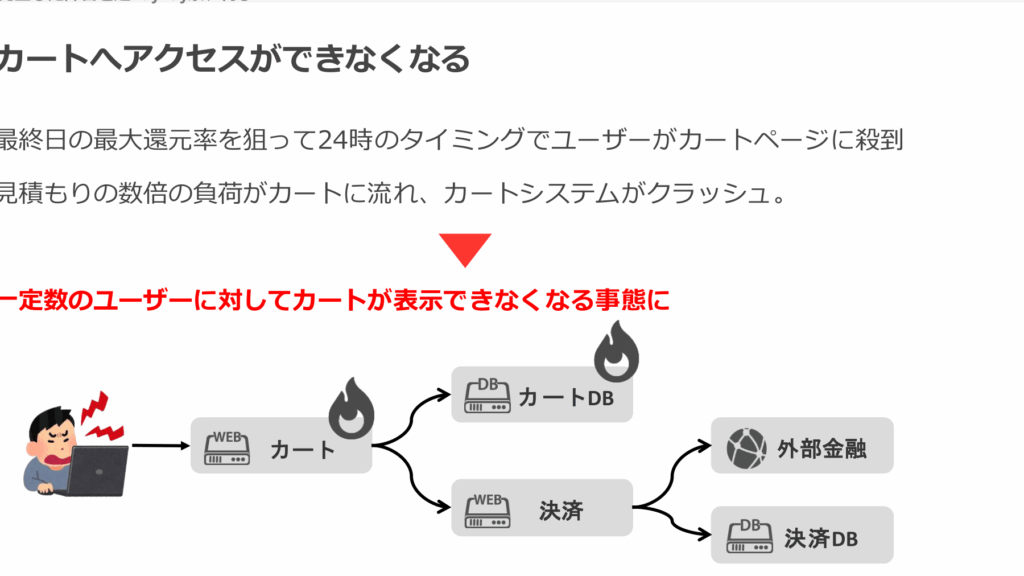 - システムがダウンした場合、支払いができなくなる。