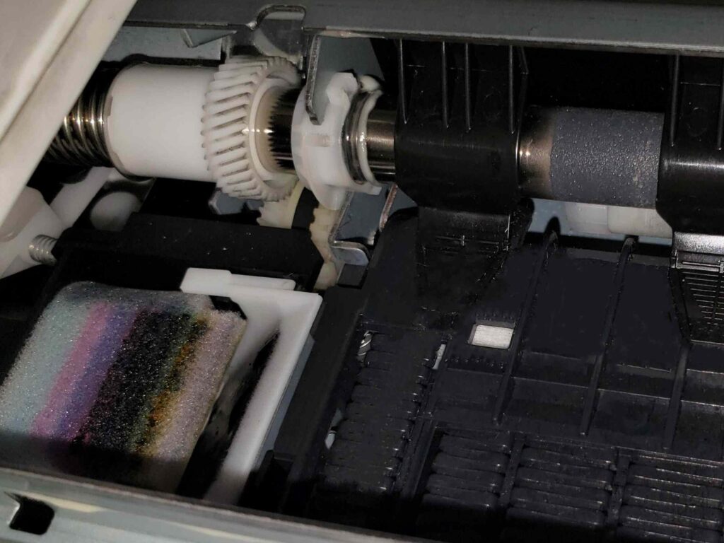 - 廃インク吸収パッドの状態を目視で確認する。汚れや破損の兆候がないか見ます。