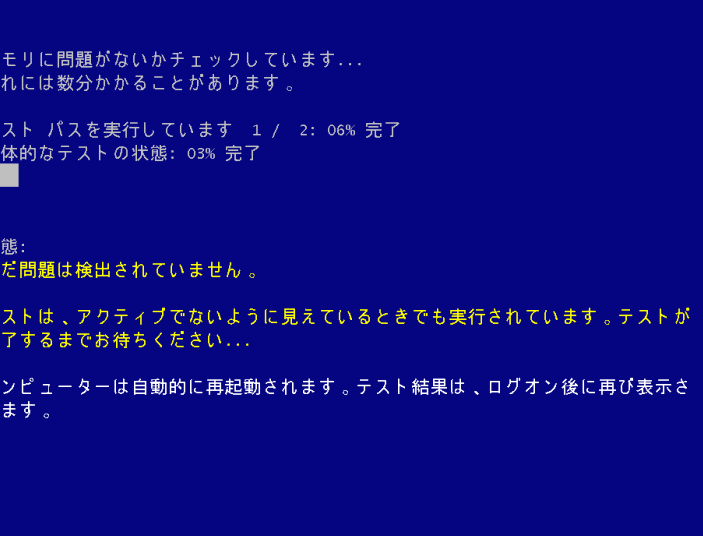 - メモリ診断ツールを使用する。 Windowsのメモリ診断を起動し、基本的なテストを実施します。
