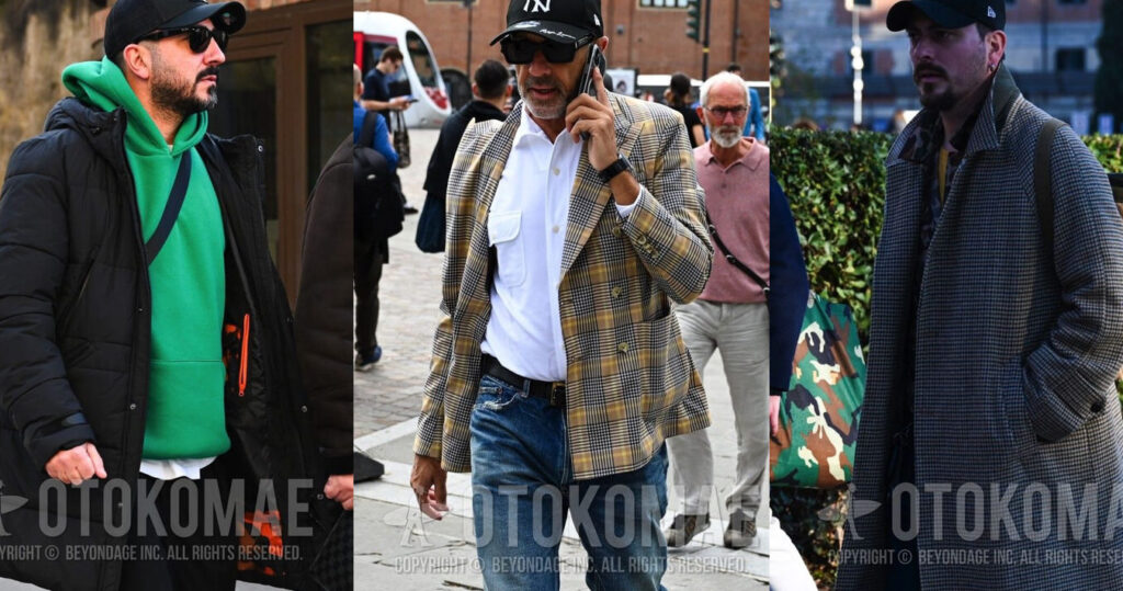 - ベースとなるアイテムを決める。Tシャツやスウェット、デニムなど、キャップに合うトップスを選ぶ。