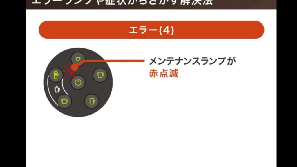 - コーヒー豆が詰まった場合:コーヒーを抽出する機構が正常に機能しない。豆の確認と清掃が必要。