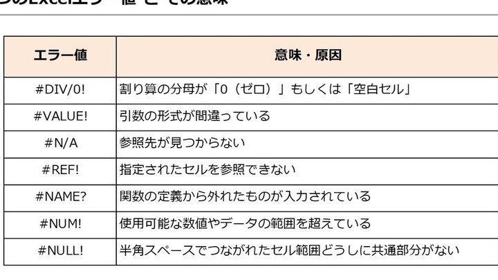 それぞれのエラーメッセージを理解すると、エクセルでの数式を修正しやすくなります。