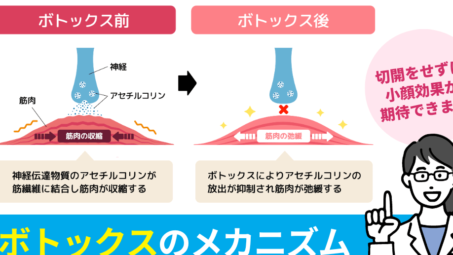 ボトックスは、ボツリヌス菌から得られる神経毒を薄めたもので、筋肉の動きを抑制します。