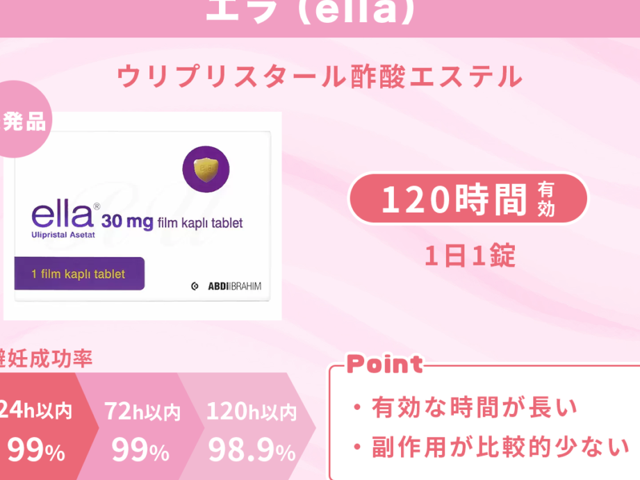 - 効果の高さ: エラは性交後72時間以内に服用することで妊娠を約95%防ぎます。