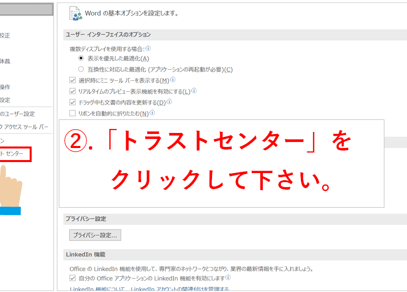 セキュリティの設定を確認します。