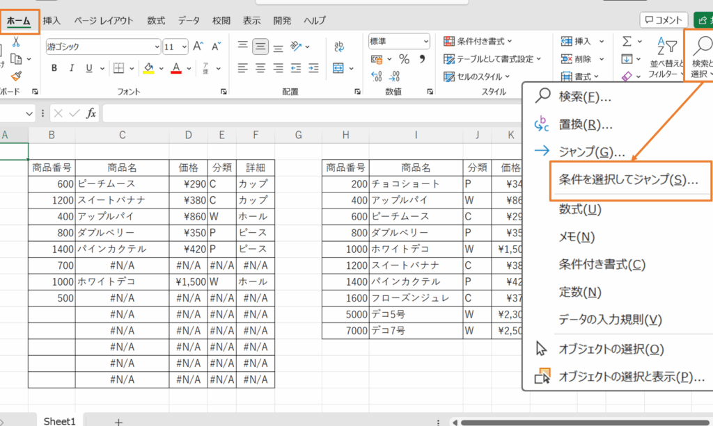 - エラーが発生しているセルをクリック。