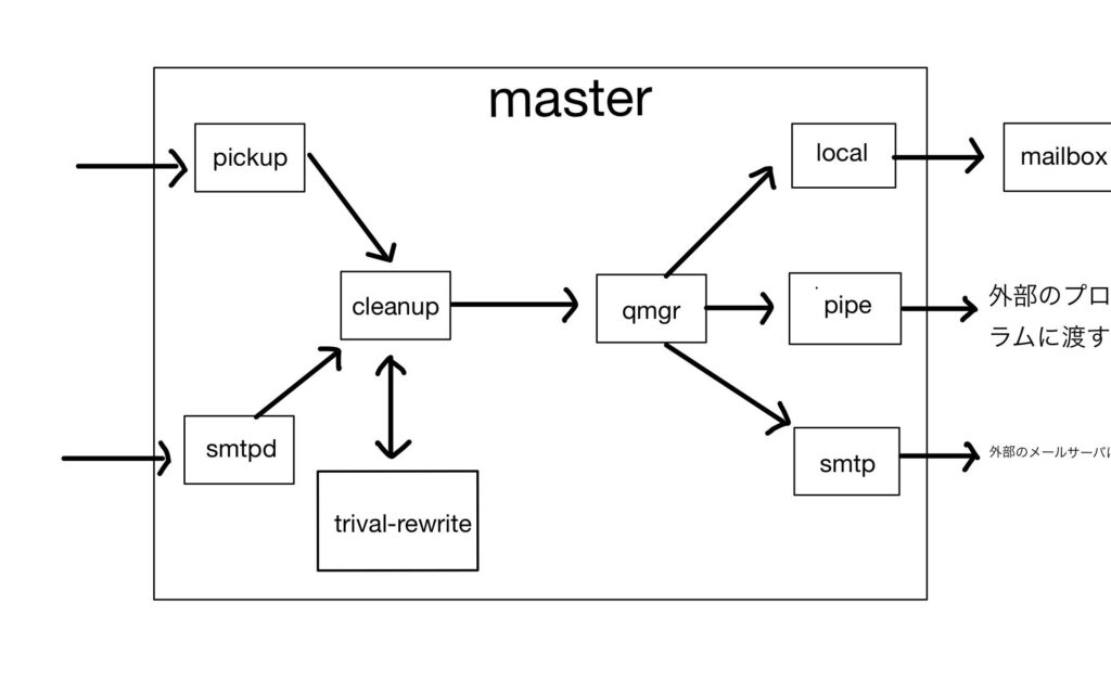 メールダイモンは、メールサービスのバックエンドで機能します。以下の点がその役割を示しています。