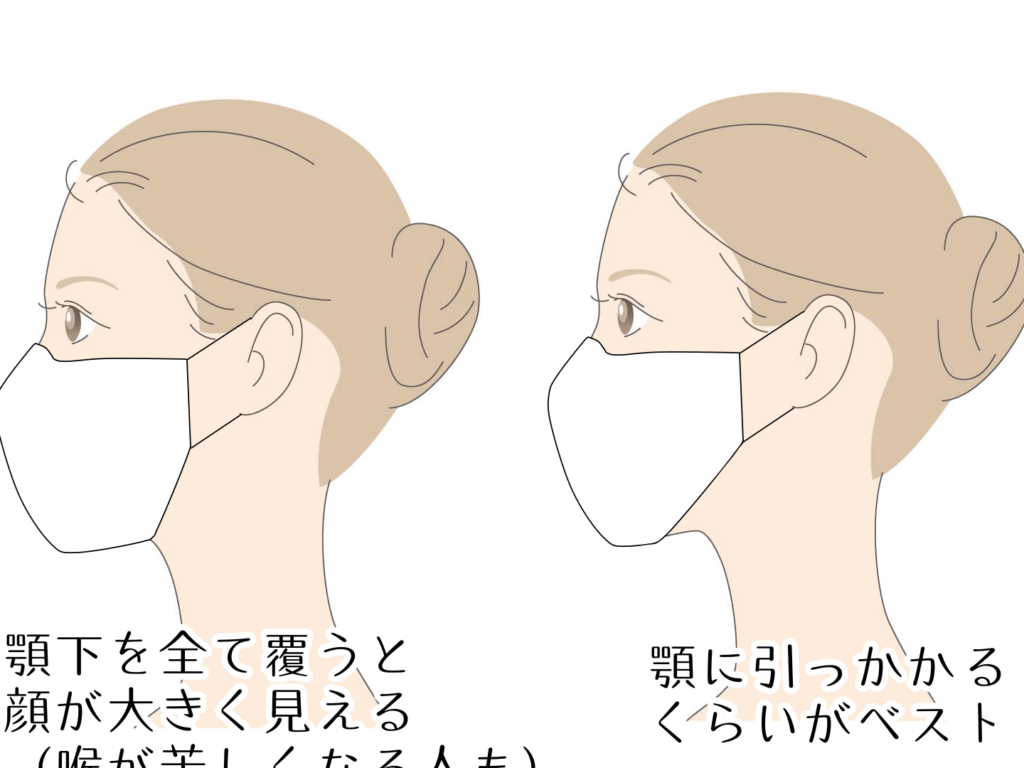 - フィット感をチェックする。 マスクを装着して、顎や頬にしっかりフィットするか確認します。
