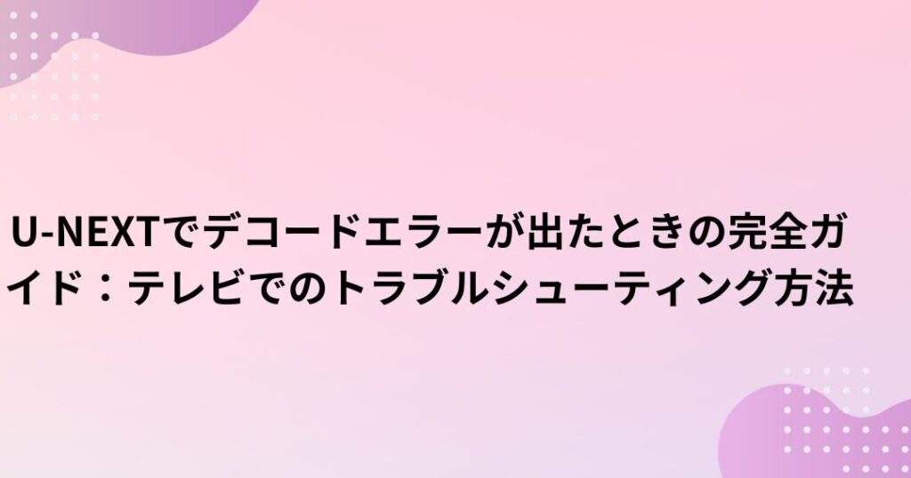 私たちが動画を楽しむために欠かせないのが、ストリーミングサービスですが、時には「unext デコードエラー」に直面することがあります。このエラーは、視聴中のコンテンツが突然停止したり、再生できなくなったりする原因となります。皆さんもこの問題に悩まされた経験があるのではないでしょうか?