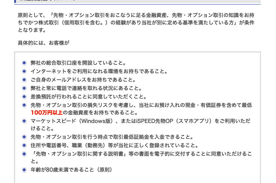 - 年齢制限の不満足。 証券口座を開設するには、20歳以上である必要がある。