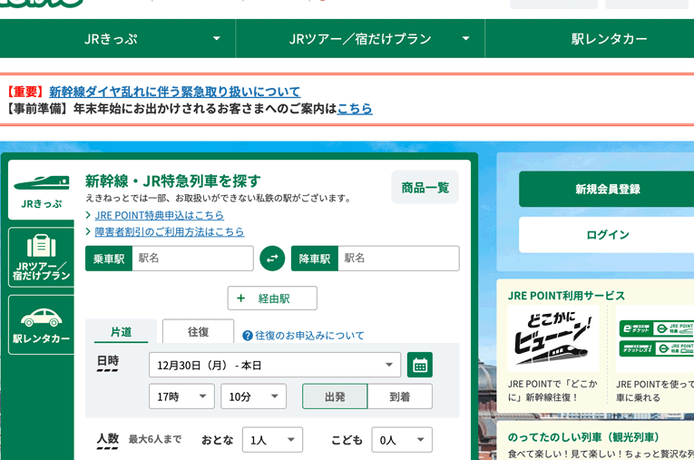 - 公式サイトにアクセスする: えきねっとのホームページに入ります。