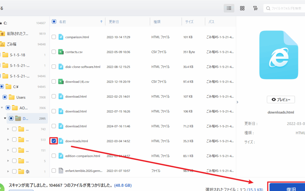 - ファイルブラウザを使用して、修復したいファイルを指定します。