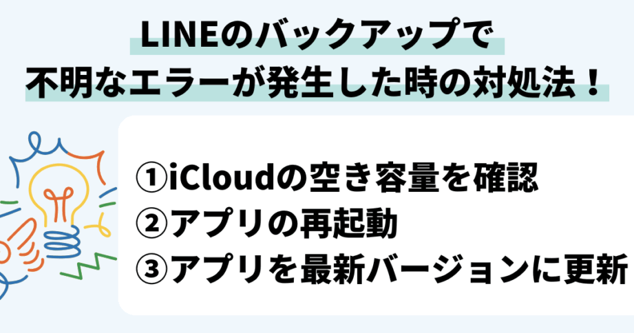 「LINEバックアップ 不明なエラー」が発生した場合、次の手順で解決できる可能性があります。