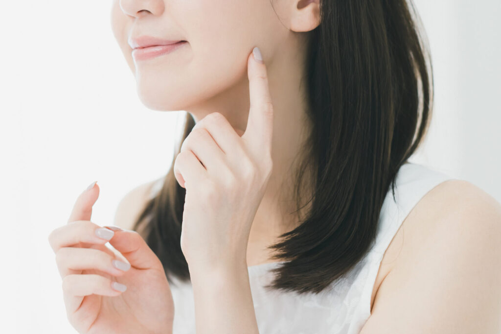 指の腹でやさしくエラの周辺を押し、円を描くようにマッサージします。