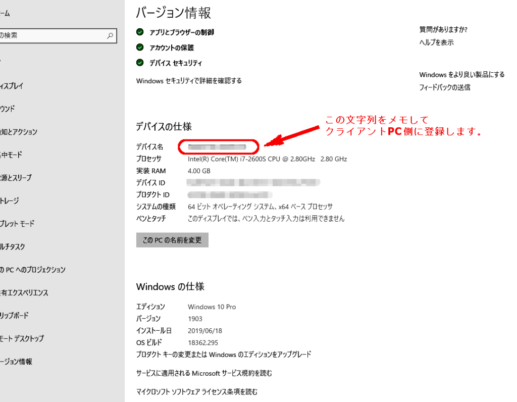 - 相手の接続情報を取得します。 リモート接続するデバイスのIDやパスワードを確認します。