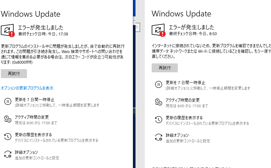 Windows Update エラーが発生しました 再試行とは