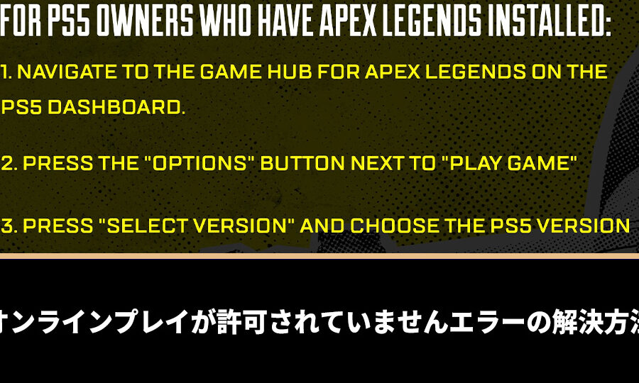 エラーメッセージ「Apexオンラインプレイが許可されていません」との対処法を明確に示します。プレイヤーにとって重要な手順は以下の通りです。
