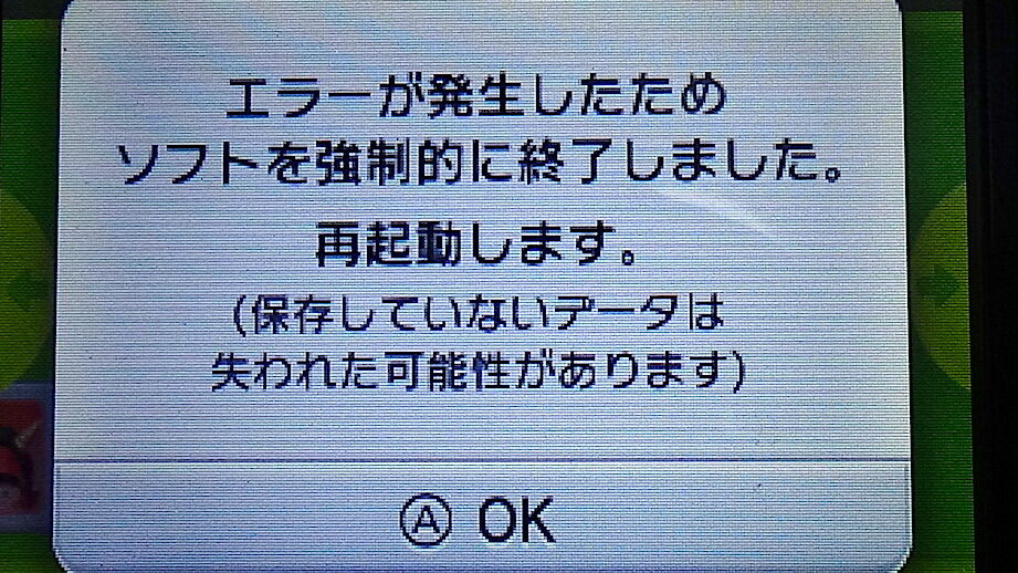 エラーが発生したためソフトを強制的に終了しました 3dsの対処法