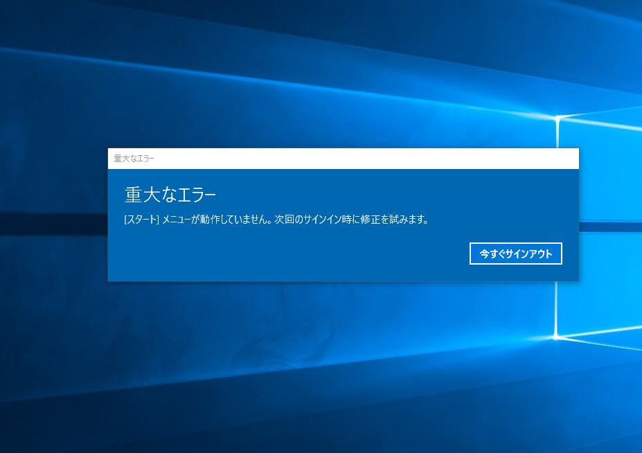 重大なエラー スタートメニューが動作していませんの解決法